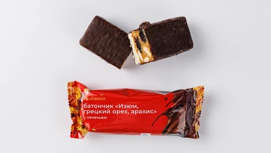 Арахисовый батончик в шоколаде скрасит любое чаепитие и спасёт вас от голода в пути, ведь он не только сладкий, но и довольно питательный. Во вкусе органично сочетаются ореховые и шоколадные ноты, финиковый сироп и изюм придают ему натуральную сладость, а печенье создаёт изысканный контраст текстур. Благодаря компактному формату батончик удобно носить с собой для быстрого перекуса и чтобы полакомиться на ходу.
