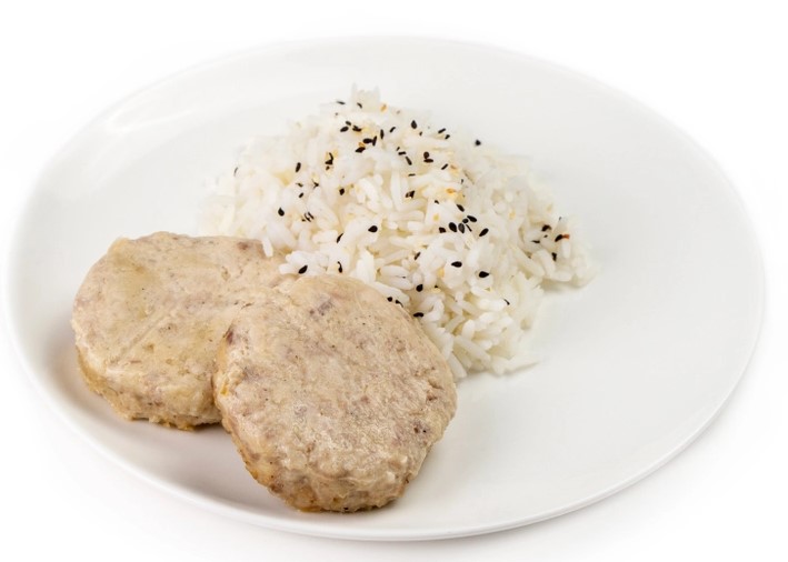 Вес: 1 порция – 280 г (2 котлеты по 100 г + 80 г риса)