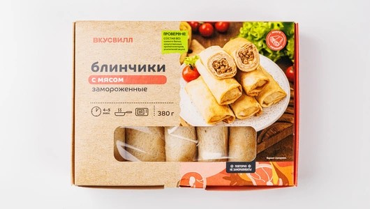 Домашнее блюдо с начинкой из говяжьего и свиного фарша высокого качества. Из мяса удаляются жилки и хрящики, поэтому блинчики придутся по вкусу даже детям. Быстрый и сытный вариант для завтрака, который может храниться в вашем морозильнике целых полугода! Перед подачей блины достаточно разморозить в микроволновке или на сковороде в течение нескольких минут.