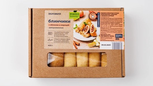 Аппетитные домашние блинчики с начинкой из сочных яблок с щепоткой корицы. Идеально подходят для лёгкого завтрака. Нежные и умеренно сладкие, они так же могут стать замечательным десертом. Блинчики уже готовы: просто разогрейте их в СВЧ-печи или на сковороде и наслаждайтесь ароматным блюдом.