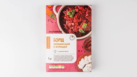 Густой борщ на легком курином бульоне с кусочками куриной грудки бережно приготовлен нами из свежих ингредиентов по традиционному рецепту, чтобы вы в любой момент насладились горячим домашним обедом. Метод шоковой заморозки позволяет надолго сохранить насыщенный вкус и аромат блюда, а большой упаковки хватит, чтобы накормить всю семью.