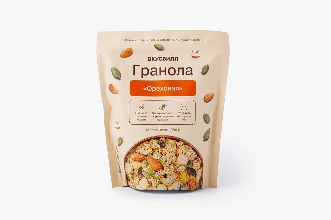 Мультиполезная смесь для здорового, питательного завтрака. Основа гранолы — цельнозерновые хлопья из овса и пшеницы. Для сладкой пряности добавлен натуральный мед, корица и карамелизированный сахар. Семена тыквы, ядрышки миндаля и лесного ореха делают гранолу еще более сытной и аппетитно хрустящей. Гранола уже готова к употреблению. Остается добавить в нее молоко, йогурт или ряженку, и зарядить свой день энергией.