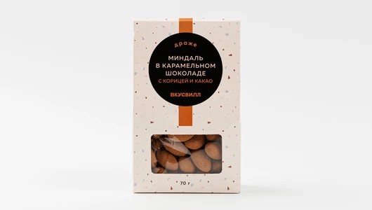 Цельный обжаренный миндаль покрыт слоем карамельного белого шоколада и присыпан смесью какао и корицы. Орех даёт приятный хруст, шоколад — сливочную сладость с лёгким карамельным акцентом, а корица добавляет мягкую пряную нотку. Вкус получается насыщенным, но сбалансированным — без излишней сладости. Упаковка удобно открывается, а сами драже не липнут к рукам. Подходят как для десертной тарелки, так и для небольшого сладкого перекуса в течение дня.