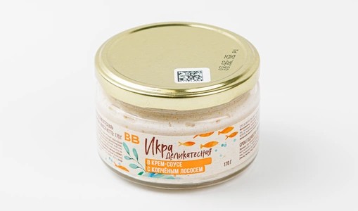 Икра деликатесная в крем-соусе с копченым лососем, 170 г