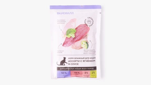 Корм влажный для кошек «Ассорти с ягненком» в соусе, 85 гр