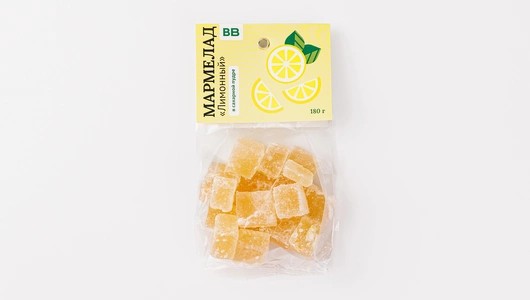 Мягкий лимонный мармелад в сахарной пудре с яркой цитрусовой кислинкой. В основе — сок свежих лимонов и натуральный пектин, который придаёт нежную, упругую текстуру. Ароматная цедра делает вкус ярче, а сахарная пудра смягчает кислинку. Напоминает домашний мармелад — такой, как в детстве!