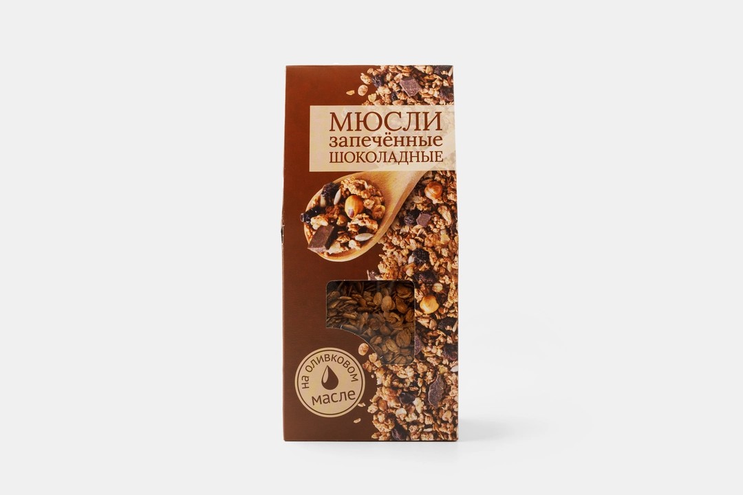 Мультизлаковые мюсли с изюмом, кусочками натурального шоколада и цельным фундуком, запечённые с добавлением оливкового масла. Питательные, аппетитно хрустящие, со сбалансированным шоколадно-ореховым вкусом — эти мюсли смогли бы стать настоящим полезным десертом. Лучше всего они сочетаются с густыми йогуртами без добавок, молоком и кефиром. Если вам хочется сделать мюсли чуть мягче, их можно разогреть в микроволновке вместе с молоком или другой заправкой в течение нескольких секунд.