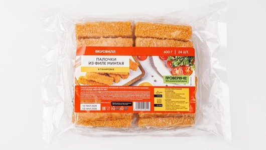 Аппетитные рыбные палочки — отличный вариант для обеда и ужина. Приготовить их не составит труда: обжарка займёт всего несколько минут. Благодаря панировочным сухарям, палочки приобретут хрустящую корочку, а филе минтая сохранит свою нежность и аромат. Чтобы вкус рыбы раскрылся ярче, советуем подавать с соусом тар-тар. Рыбные палочки изготовлены исключительно из филе минтая — без кожи и внутренностей.