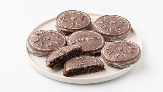Нежное шоколадное печенье, приготовленное на сливочном масле, с начинкой из яблочного повидла. Во вкусе — не только ароматное какао и сладость фруктов, но и оригинальные нотки душистых специй: корицы и чёрного перца.