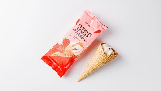 Нежный густой пломбир в хрустящем вафельном рожке — охлаждающее лакомство, любимое с детства. Наполнитель из клубничного пюре отлично дополняет вкус ягодными нотками. В жаркий день — то, что нужно!
