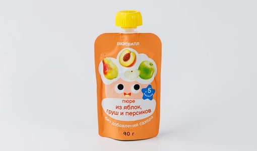 Нежное пюре для малышей с 5 месяцев. Приготовлено с заботой из одних лишь спелых фруктов: яблок, груш и персиков. Не содержит добавленного сахара, ароматизаторов и загустителей. Станет лёгким самостоятельным перекусом или аппетитным соусом к каше и творожку. А благодаря мягкой упаковке с носиком, пюре удобно захватить с собой, чтобы подкрепиться на прогулке или в дороге.