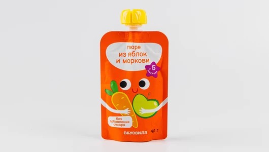 Нежное пюре для детей с 5 месяцев. Приготовлено из отборных яблочек и сочной моркови, без добавления сахара. Лакомство упаковано в мягкую упаковку с удобным носиком и плотно закручивающейся крышкой. Поэтому полезный перекус можно устроить в любое время и в любом месте.