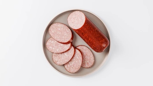 Натуральный сервелат из свинины и курицы, изготовленный с добавлением шпика и пикантных специй. Обладает насыщенным мясным вкусом и лёгким ароматом копчения, перед которым невозможно устоять. Прекрасно подойдёт для приготовления сытных бутербродов и несомненно украсит стол при подаче в качестве закуски.