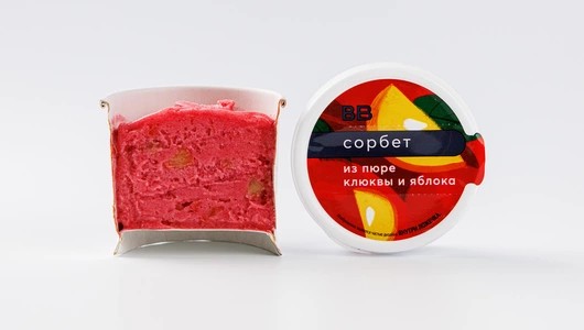 Освежающий десерт с выраженной кислинкой клюквы и мягкими яблочными нотами. Лёгкая сладость сбалансирована щепоткой корицы, поэтому вкус получается ярким, но не приторным. Натуральное пюре и кусочки яблок придают десерту плотность и объём, напоминая домашние лакомства. Продукт низкокалорийный, подойдёт тем, кто ищет альтернативу привычному мороженому. В крышке спрятана ложечка, чтобы вам было удобно есть даже во время прогулки.