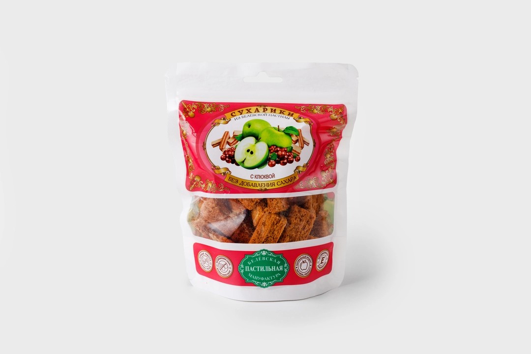 Воздушное лакомство из яблок и клюквы, изготовленное без добавления сахара. Оно непременно придётся по душе обожателям классической белёвской пастилы, ведь обладает таким же насыщенным сладковатым вкусом с приятной ягодной кислинкой. Идеальная пара для чаепития и полезный снек, которым можно перекусить на ходу.