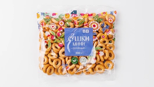 Классически хрустящие сушки-малышки с мягким солоноватым вкусом. Классическое дополнение к чаю на каждый день и просто снек на закуску.