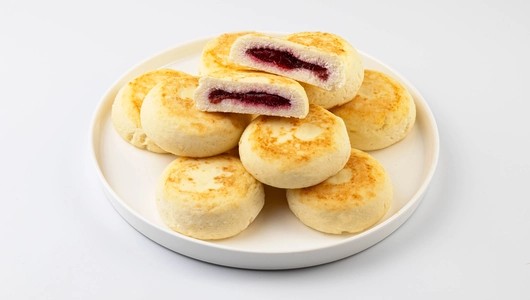 Большая порция сырников для уютного семейного завтрака. Приготовлены из свежего 9% творога и наполнены кисло-сладким вишнёвым джемом. Сырники быстро обжарены во фритюре, а затем выпечены в туннельной печи, поэтому вам остаётся только разогреть их в микроволновке.