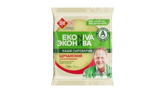 Сыр полутвердый «Щучанский» произведен в лучших традициях сыроварения по уникальной рецептуре. Он обладает выраженным сырным, сливочным вкусом, умеренно эластичной и однородной консистенцией, а также текстурой с рисунком, состоящим из глазков неправильной, угловатой формы, равномерно расположенных по всей массе. Применение: универсален как для самостоятельного употребления, так и для приготовления салатов, сэндвичей, пиццы или пасты. Страна-производитель Россия
