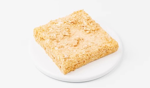 Этот «Наполеон» именно такой, каким он должен быть: с невесомыми коржами из рубленого теста, нежным заварным кремом на основе сгущённого молока и сливок, украшением из хрустящей бисквитной крошки. Умеренно сладкий, лёгкий и вместе с тем сытный десерт, который придётся по душе всей семье!Торт бережно заморожен и может храниться в морозильной камере на протяжении трёх месяцев. Перед подачей на стол просто переложите десерт в холодильник на 4 часа. Сладкая «заначка», о которой вы точно не забудете!