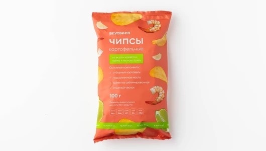 Чипсы картофельные со вкусом креветки, лайма и чеснока гриль 100г